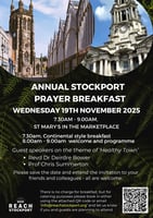Date: Wednesday, 19th November, 7:30am-9am Venue: St Mary's In The Marketplace, SK1 1YG For booking...